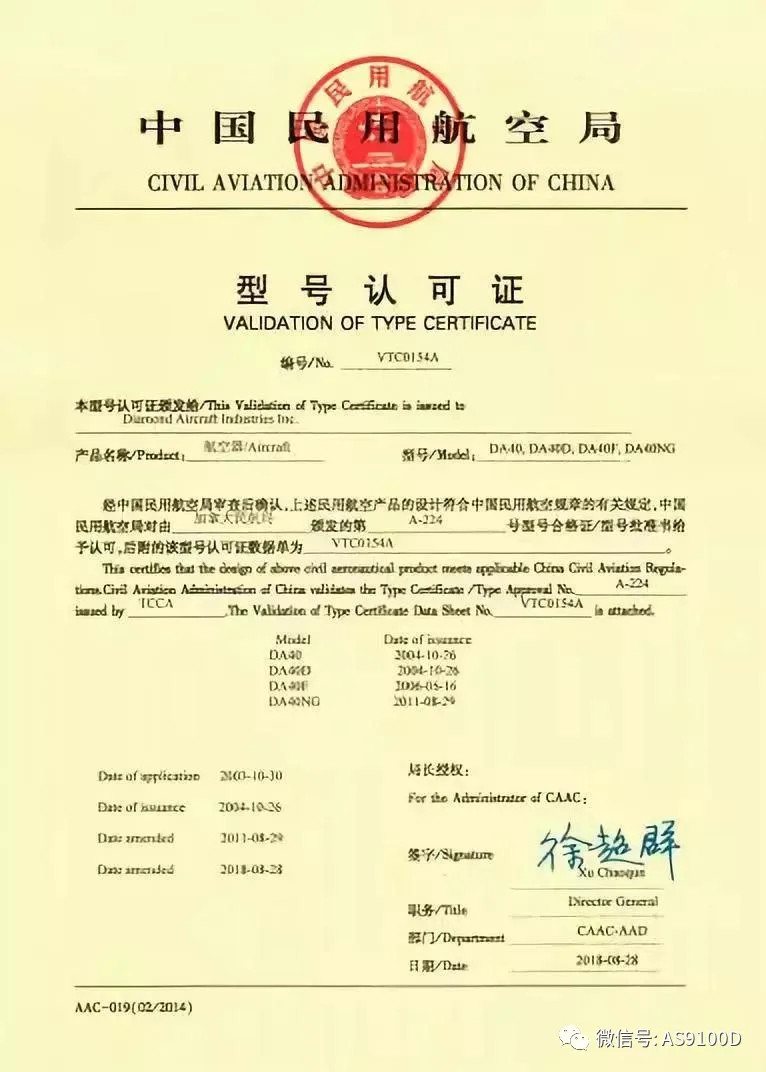 型号认可证(英文名称:validation of type certificate),简称:VTC。定义:对于进口的民用航空产品,在中国适航当局按其规定审查后,确认该产品满足中国的有关适航要求,由中国适航当局对该产品的型号合格证持有人颁发的证件。换个角度讲,就是如果飞机想要出口到中国来,中国民航局同样要对这个型号合格证进行认证,通过中国民航认可后飞机销售到中国来。这就叫做型号认可证。