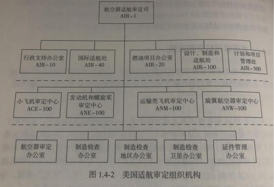 在美国联邦航空管理局,设有航空器审定司(AIR),负责适航审定管理。 FAA的审定体系组织机构如图 1.4-2所示。
